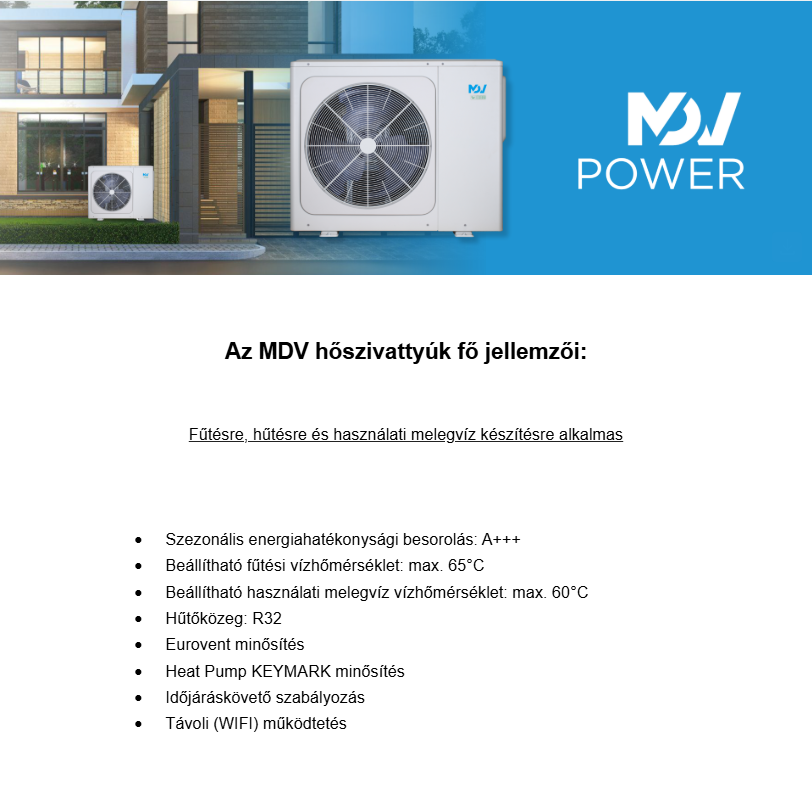 A MDV MDVC-V16WD2BR8-P MDV Power monoblokkos hőszivattyú (R32, 16 kW, 3 fázis) fontos tulajdonságai:
