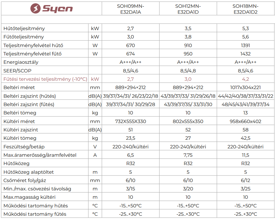 A Syen SOH09MN-E32DA1A Muse Next Inverteres Split klíma fontos tulajdonságai:
